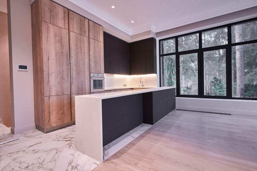 Еще один пример - использование инновационных материалов при создании фасадов шкафов и столовой поверхности. Например, акриловое стекло или корпус из алюминия с зеркальной отделкой создают эффект будущего на вашей кухне хай-тек.