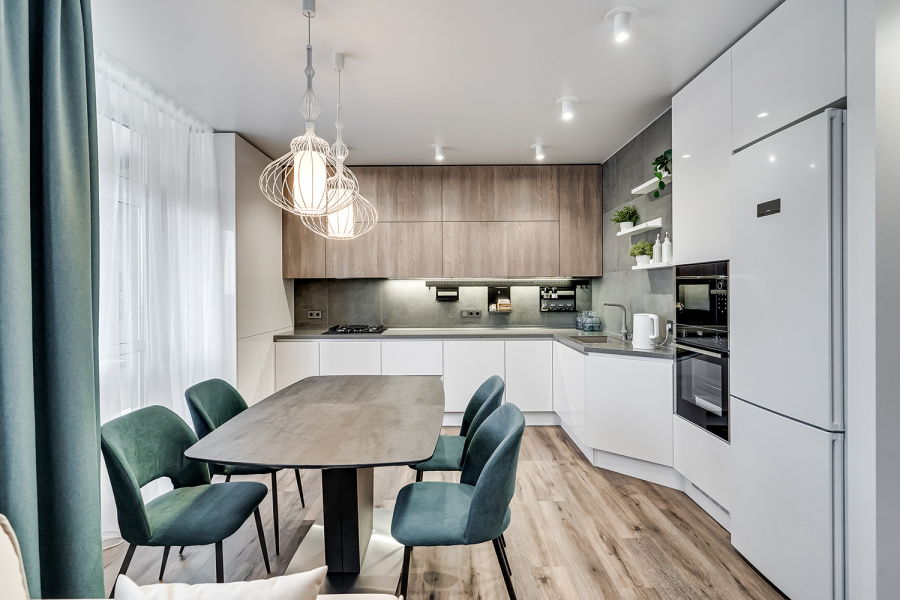 1. Используйте качественные материалы: дерево или его имитацию, мрамор или искуственный камень для столешницы. Они придают интерьеру естественность и теплоту.