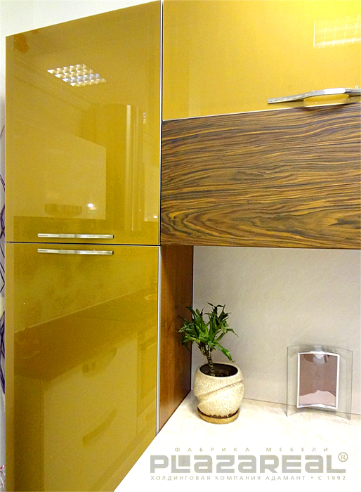 - крашенные фасады из МДФ кухни «Электра» (высокий глянец);