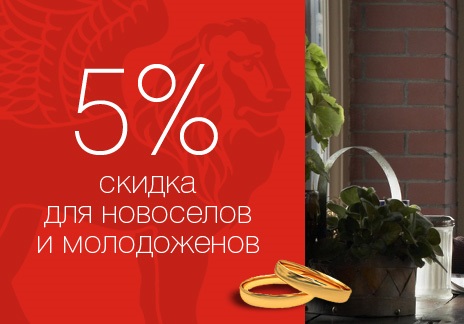 Скидка 5% новоселам и молодоженам